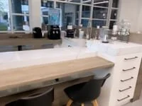 The client for this space wanted to build out a CBD store boasting products she had made herself. Although she was one of my youngest clients ever (21), she had somehow already created a whole career for herself in the CBD industry in Colorado. Having freshly moved to Boca Raton, she wanted to open her first store where she both sold and used her own products from the CBD she cultivated herself on her Colorado farm. She used the CBD creams for facial & body treatments and natural healing, such as massages. To stay true to the natural aspect of the products sold in the store, we kept a neutral color palette, walnut wood accents, and a lot of greenery to keep the space fresh.